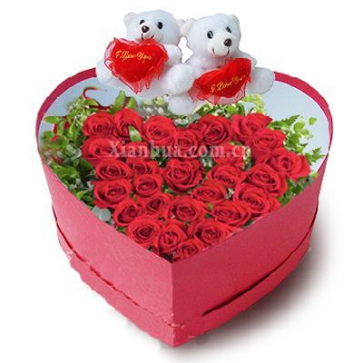 | [花束材料] | 33朵红玫瑰.2只小熊 精美礼盒包装 |