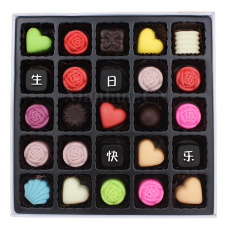| [材料] | 25颗DIY“生日快乐”巧克力,高档精美包装,净重:200克。心有多远,永远就有多远。相信有心就没有距离,爱相随,情永远。 |